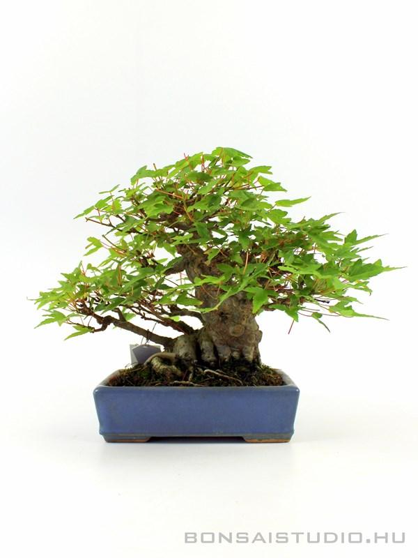 Erőteljes nabarival és törzzsel rendelkező Háromerű juhar shohin bonsai gazdag ágrendszerrel. Apró levelű változat, mely gyönyörű őszi lombszínnel rendelkezik. Jól viseli a tűző napot, de igényli a következetes öntözést. Erőteljes gyökérnövekedése miatt célszerű évente átültetni Akadamába, vagy Akadama és Kiryu keverékébe. Érdemes talajkontakkttal bomló természetes tápanyagokat adni neki, mint pl.: Biogold, Tamahi, Aburakazu. A japán bonsai tálba ültetett shohin a Top Quality kategóriába sorolható.
