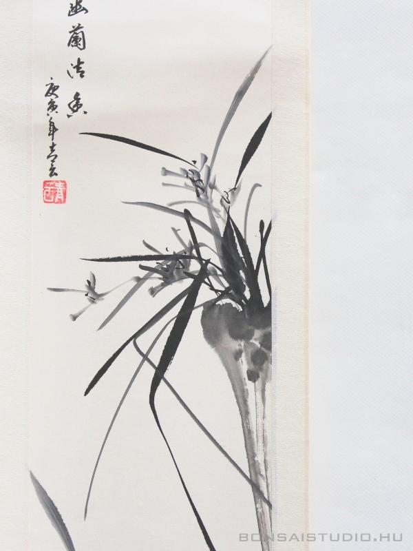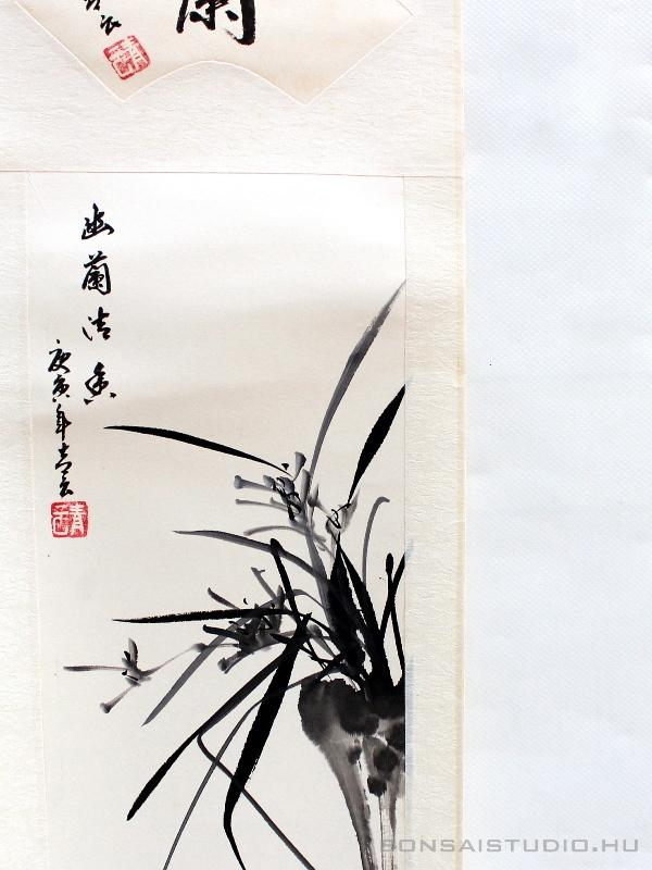 Bonsai kiegészítő szett, mely a beltéri bonsaiok lakásban történő esztétikus elhelyezéséhez vagy bonsai kiállításra felkészítésére használható. A szett tartalmaz egy egyedi kék mázas bonsai tálat (10 x 10 x 11cm), egy bonsai asztalt (11,5 x 11,5 x 17,5cm) és egy kiakasztható tekercsképet (100 x 23cm).