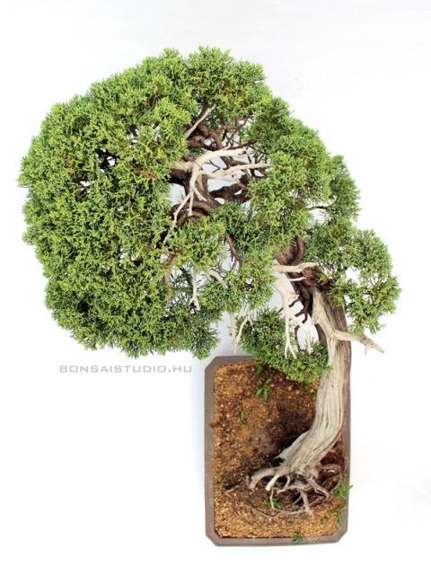Ez a bonsai tállal együtt 62.5 cm magas boróka bonsai, hangulatában (kimondottan) japán bonsai benyomását kelti, fejezi ki. Szépen kidolgozott ágszintjeivel, a törzsén futó sharival és mozgalmas deadwood részleteivel, jineivel kiállítás érett boróka bonsai.