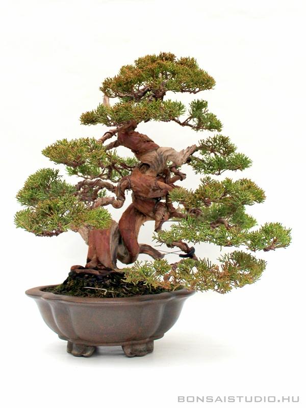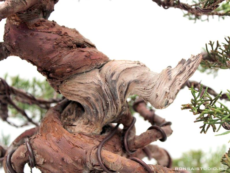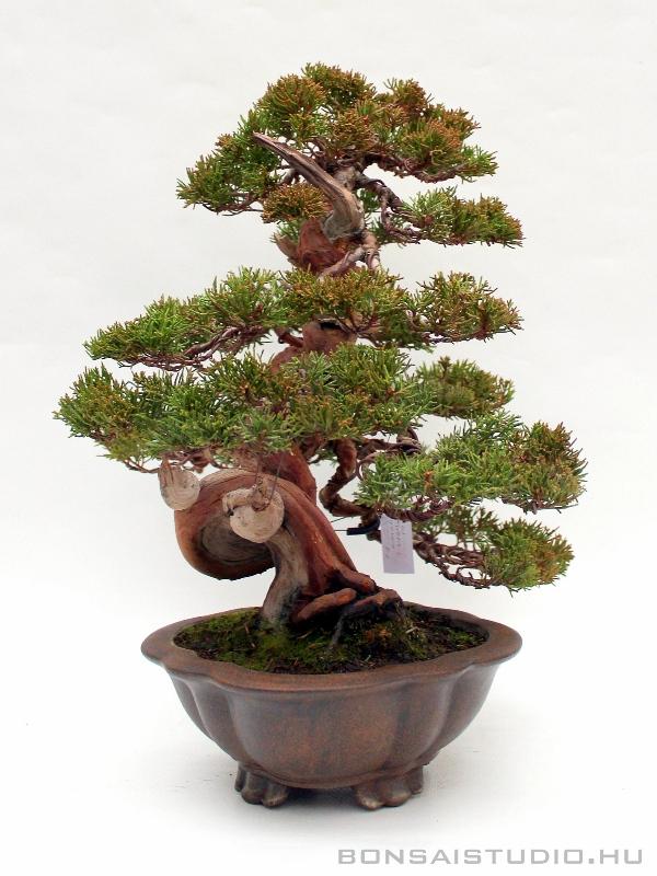 Kiváló minőségű és jól előnevelt csavart törzsű bonsai jelentős deadwood részekkel, mely egy-két év nevelést igényel csupán egy kompakt és komoly kiállítási állapot eléréséhez.