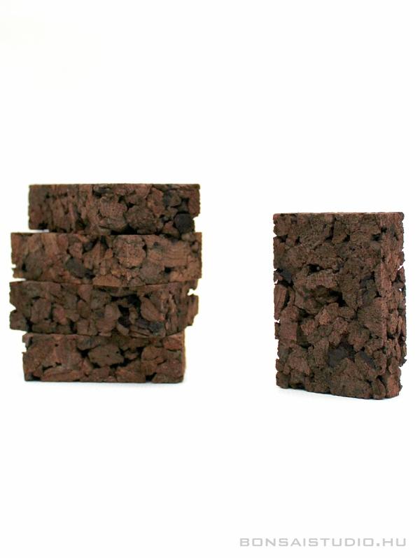 5db a tillandsiák felkötözésére, tartására szolgáló parafa és faszén darabokból összepréselt blokk. Könnyű, levegős szerkezetű természetes anyag.